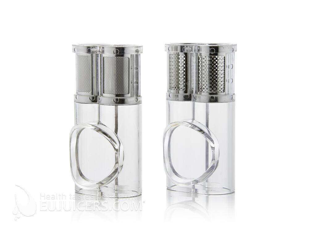 Sočenje je s prihodom sokovnika Omega Twin Gear TWN32 doseglo višji nivo! Stopnja z dvema zobnikoma zmelje sestavine in hkrati stisne maksimalno količino s hranili in minerali bogatega soka. Poleg tega ni nobene potrebe po predhodnem sekljanju sestavin na majhne koščke. Zobnika se vrtita navznoter, kar olajša vstavljanje nekaterih sestavin, saj jih zobnika potegneta v boben. Na izhodu za pulpo se nahaja nastavljiv vrtljiv gumb z vzmetjo, ki pritiska na pulpo in omogoča optimalno prilagajanje pritiska za vsako sestavino. Sokovniku sta priložena tudi dva nastavka za sočenje s katerima lahko po želji izbirate sok z manj ali več pulpe. To vam omogoča sočenje vseh sestavin: sadja, trde zelenjave, pšenične trave, listnate zelenjave in zelišč.